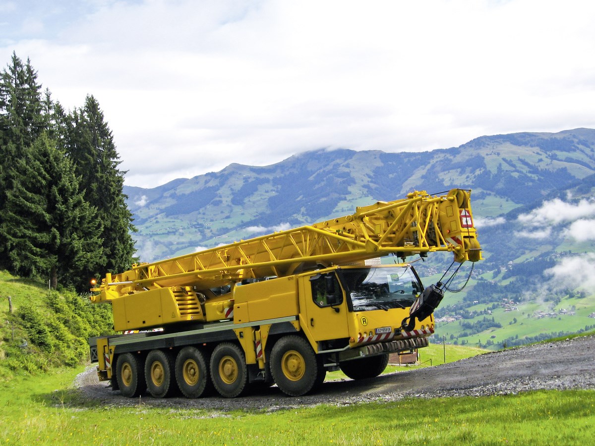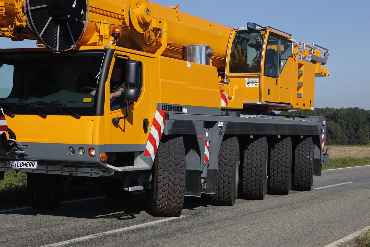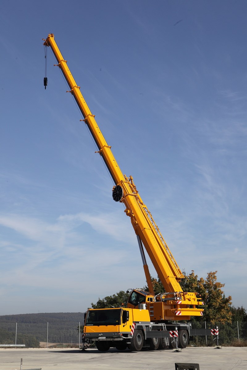 The five-axle LTM 1095-5.1 mobile crane features a long telescopic boom, with various lattice extensions also available. On public roads it carried the majority of its ballast with it which enables it to handle most crane jobs. This makes the LTM 1095-5.1 ready for use immediately as a taxi crane.