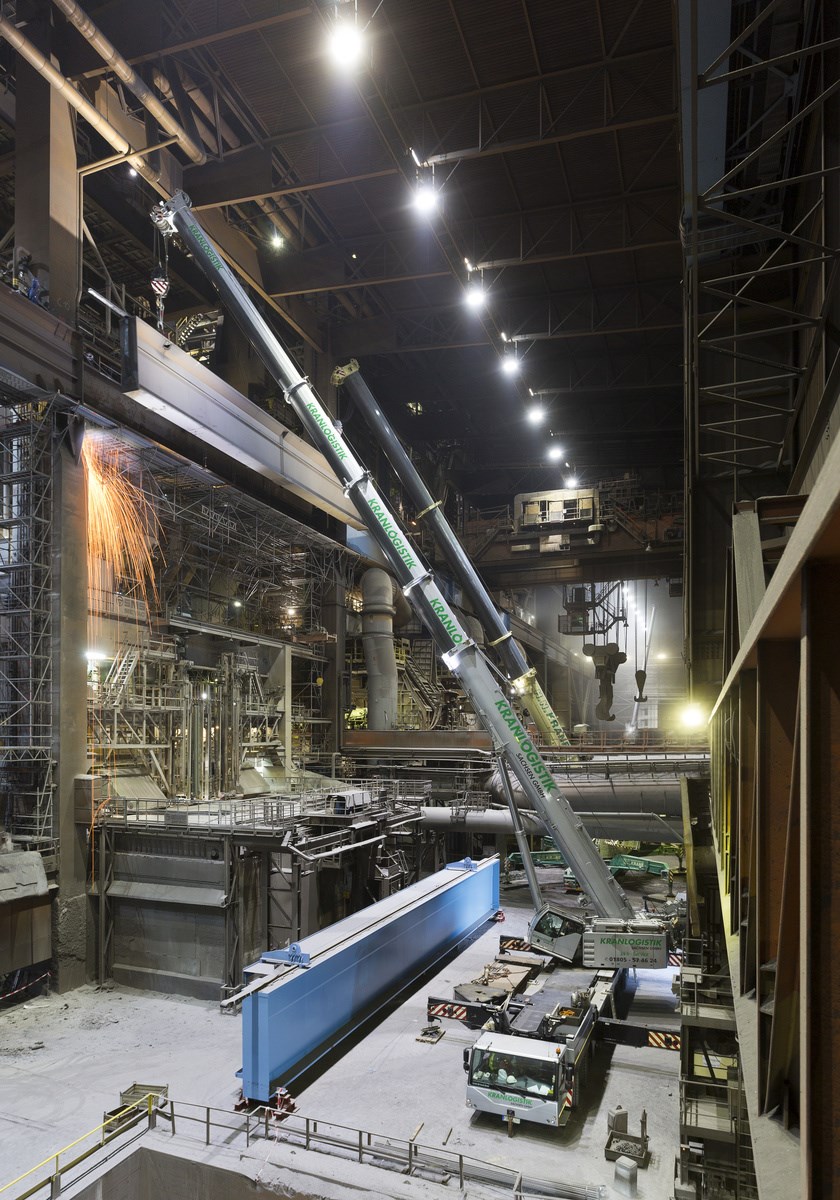 The seven-axle LTM 1400-7.1 mobile crane is one of the most compact representatives of its class and extraordinarily manoeuvrable thanks to its active rear-axle steering. The ballast radius can be significantly reduced for use n constricted areas by moving the counterweight.